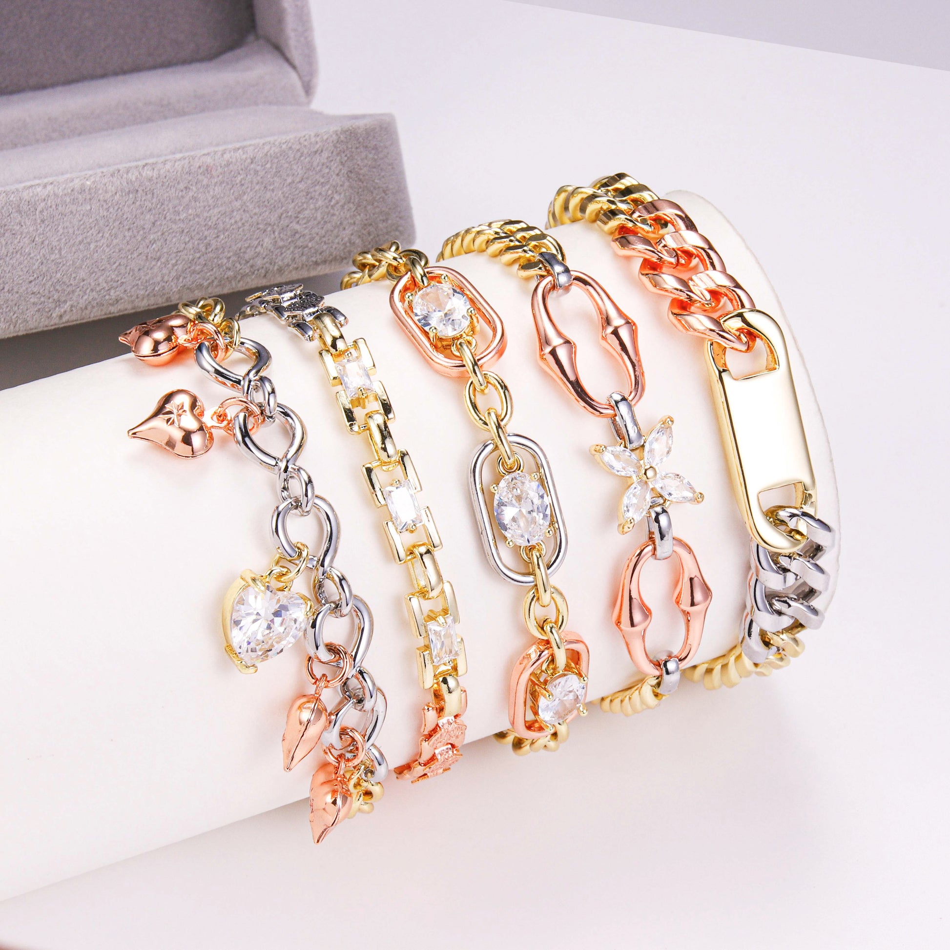 PinkFancy Jewelry 14K Gold-plated copper cubic zirconia setting Three colors wholesale bracelet