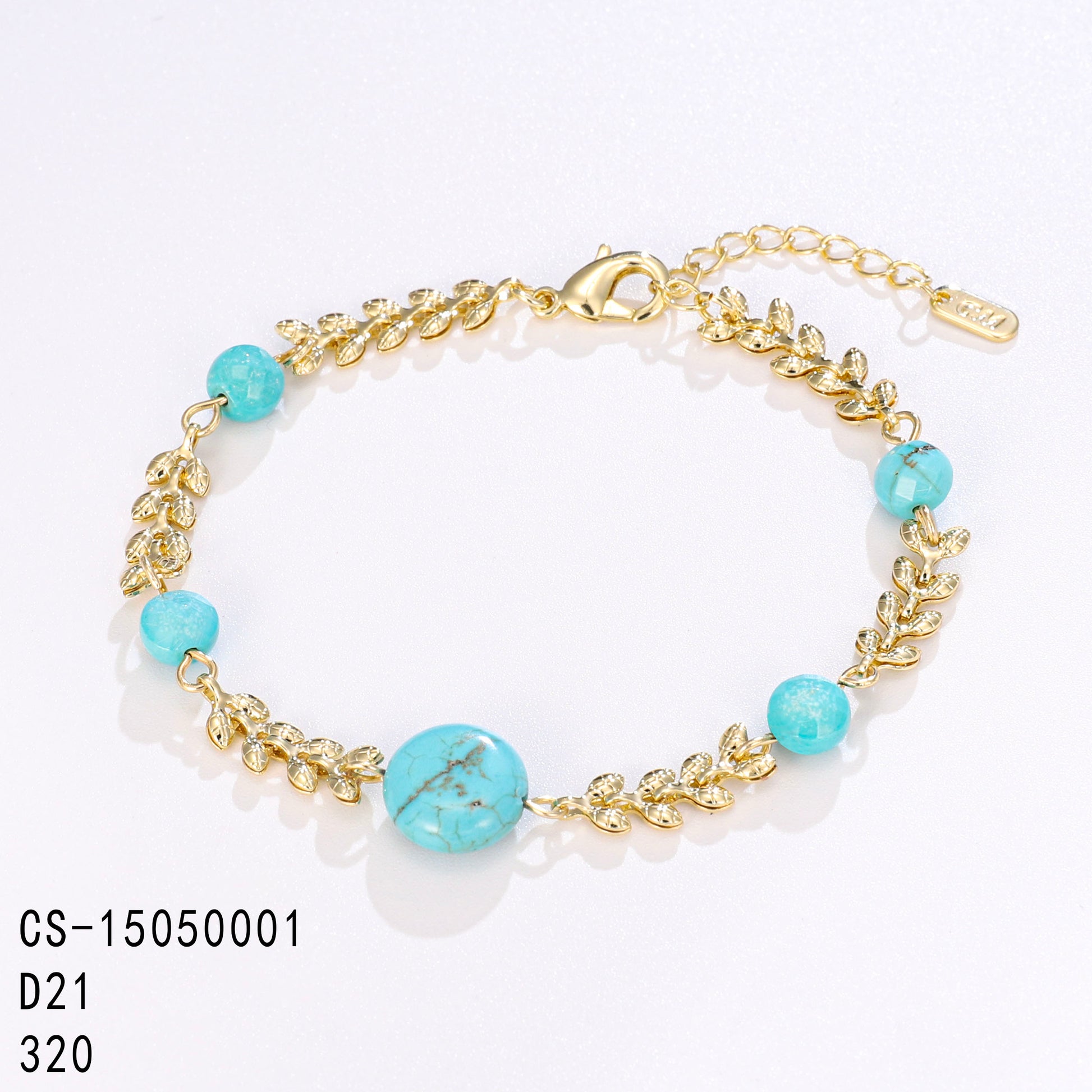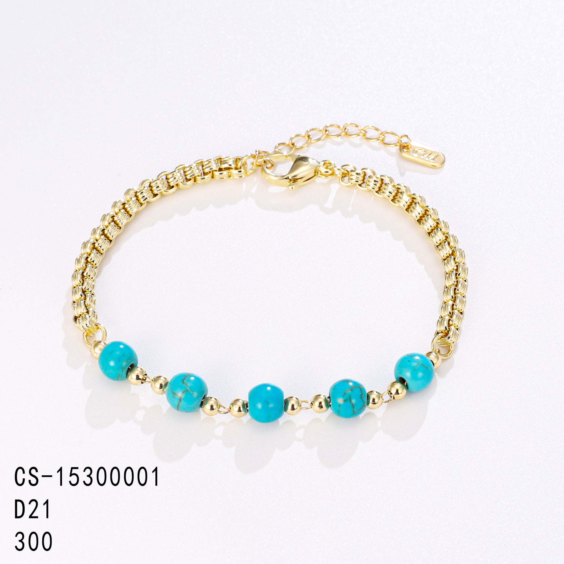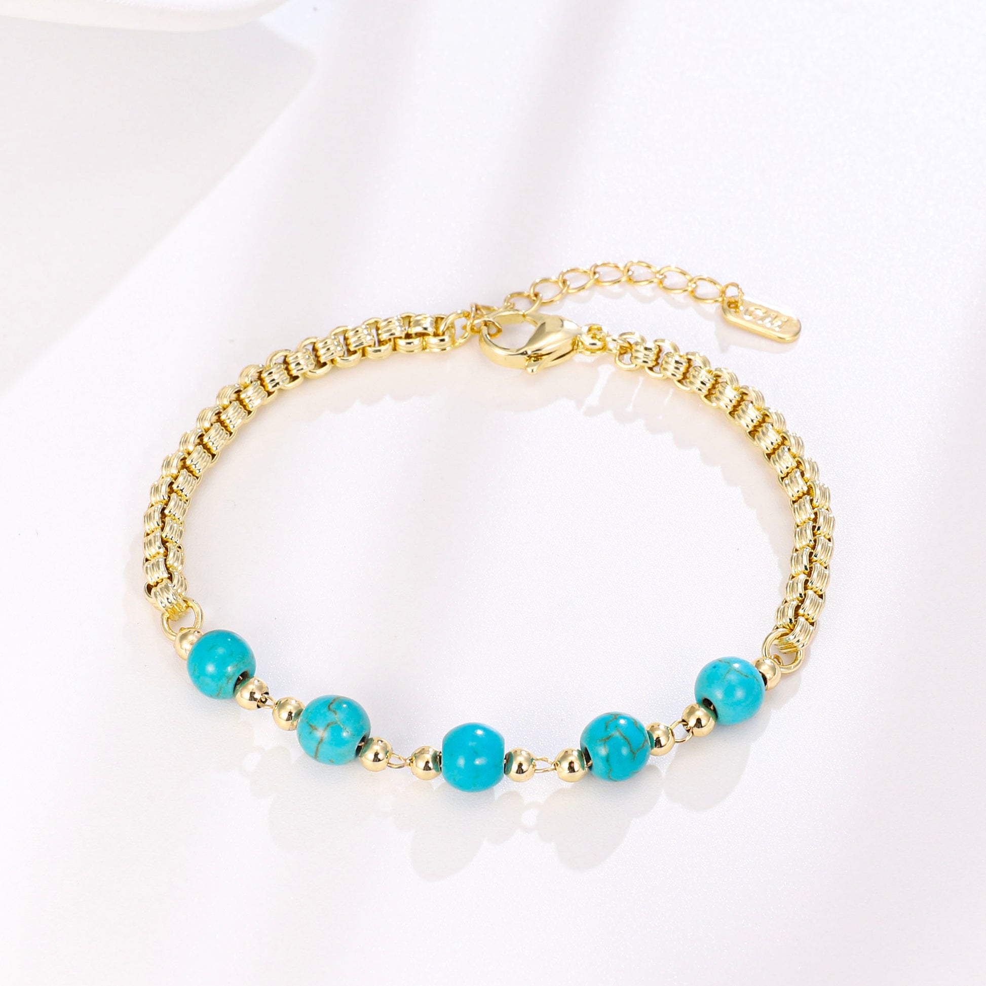 PinkFancy Jewelry 14K Gold-plated copper round bead turquoise wholesale bracelet