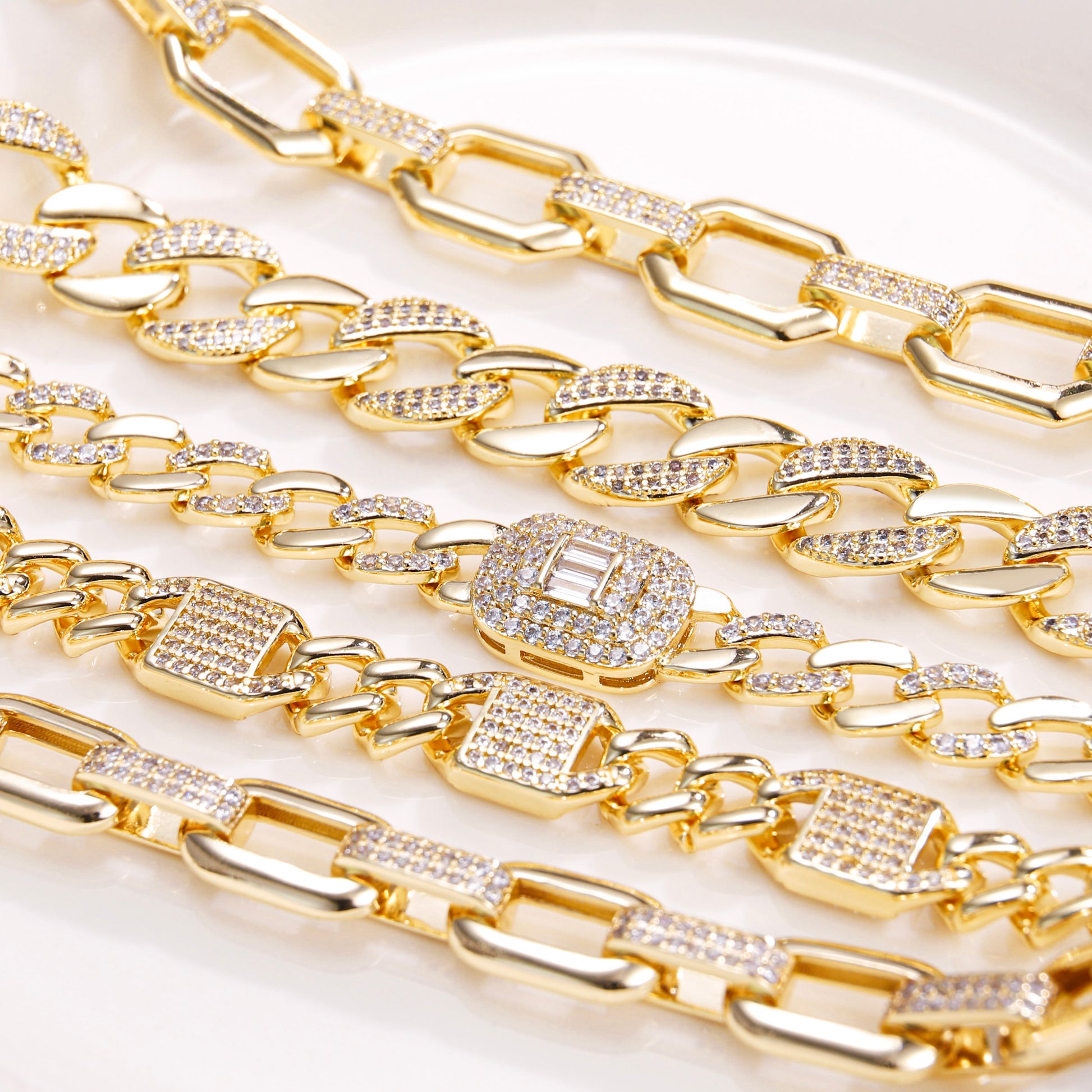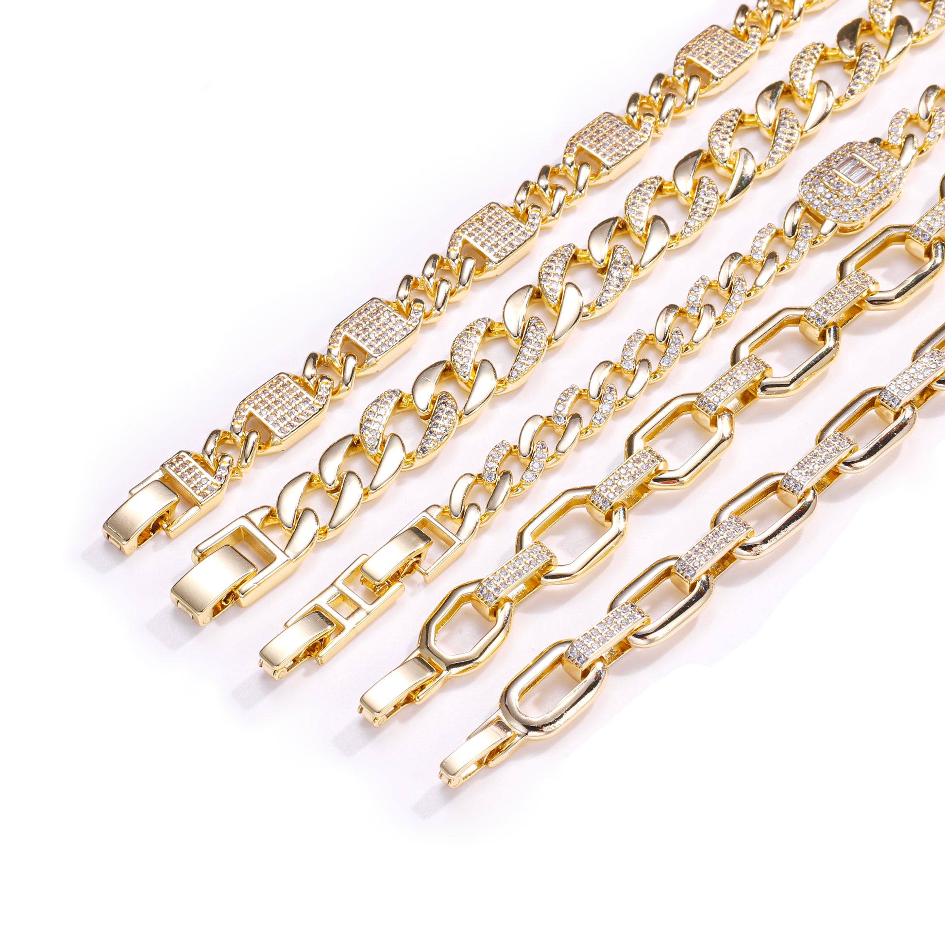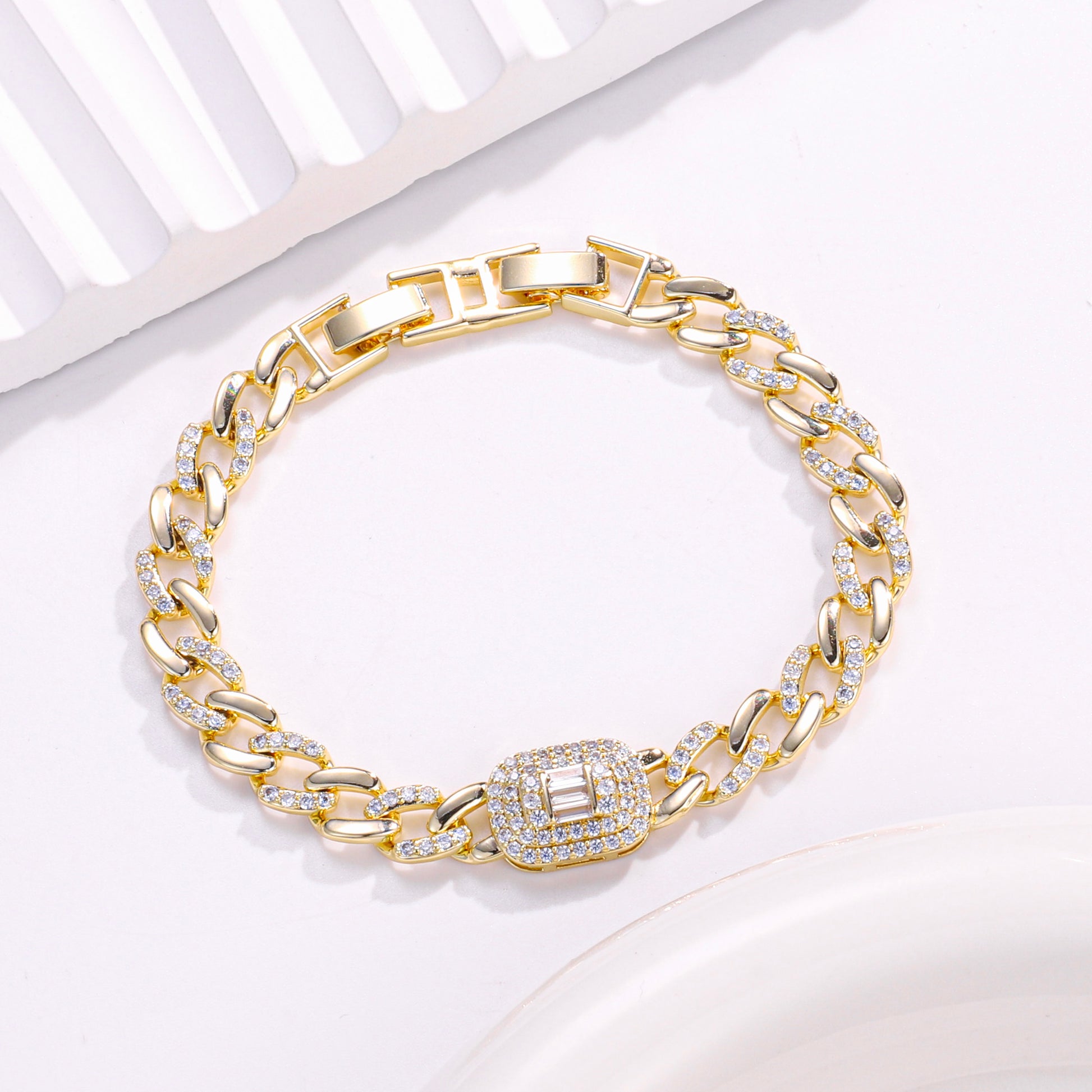 PinkFancy Jewelry 14K Gold-plated copper Luxury Cuban Chain wholesale bracelet