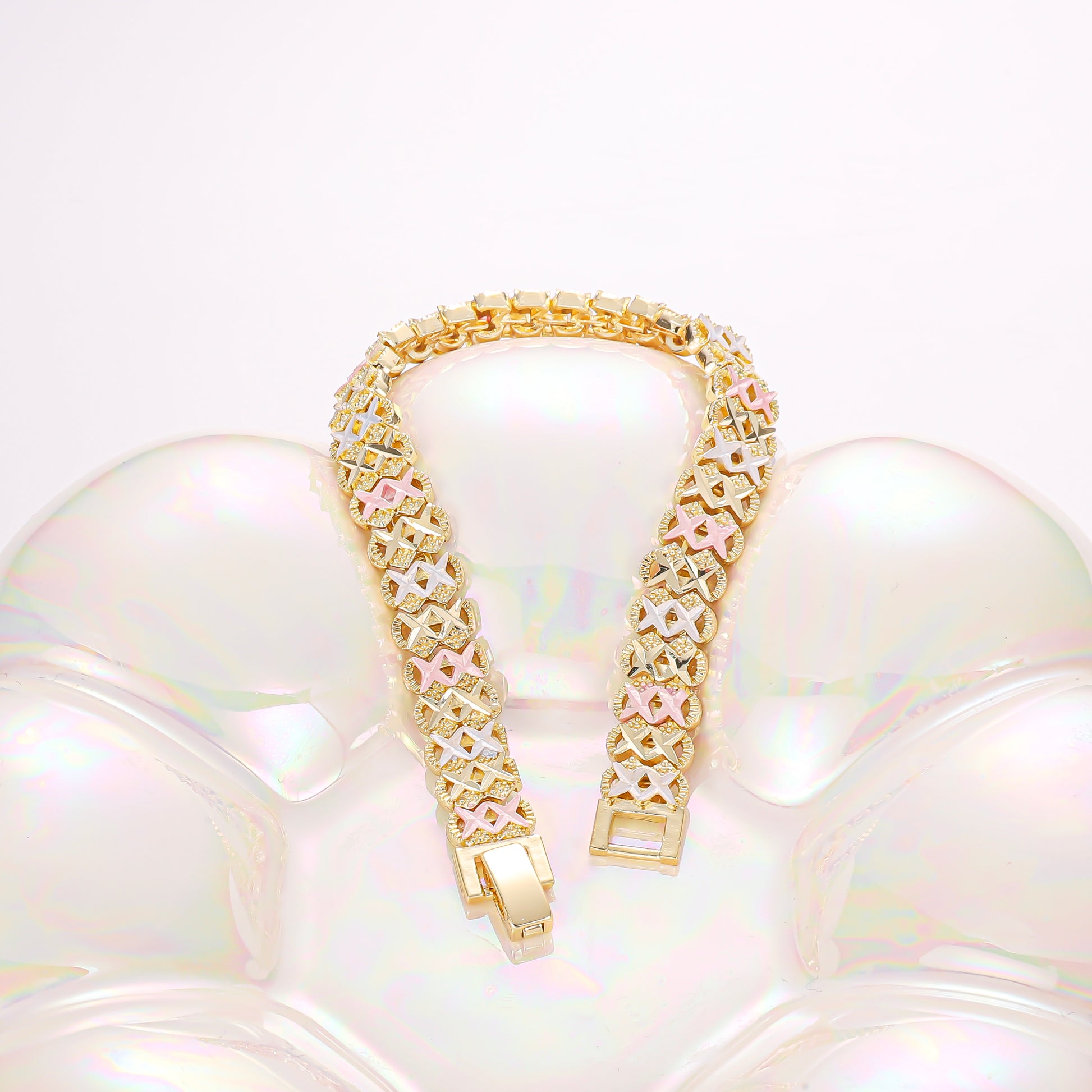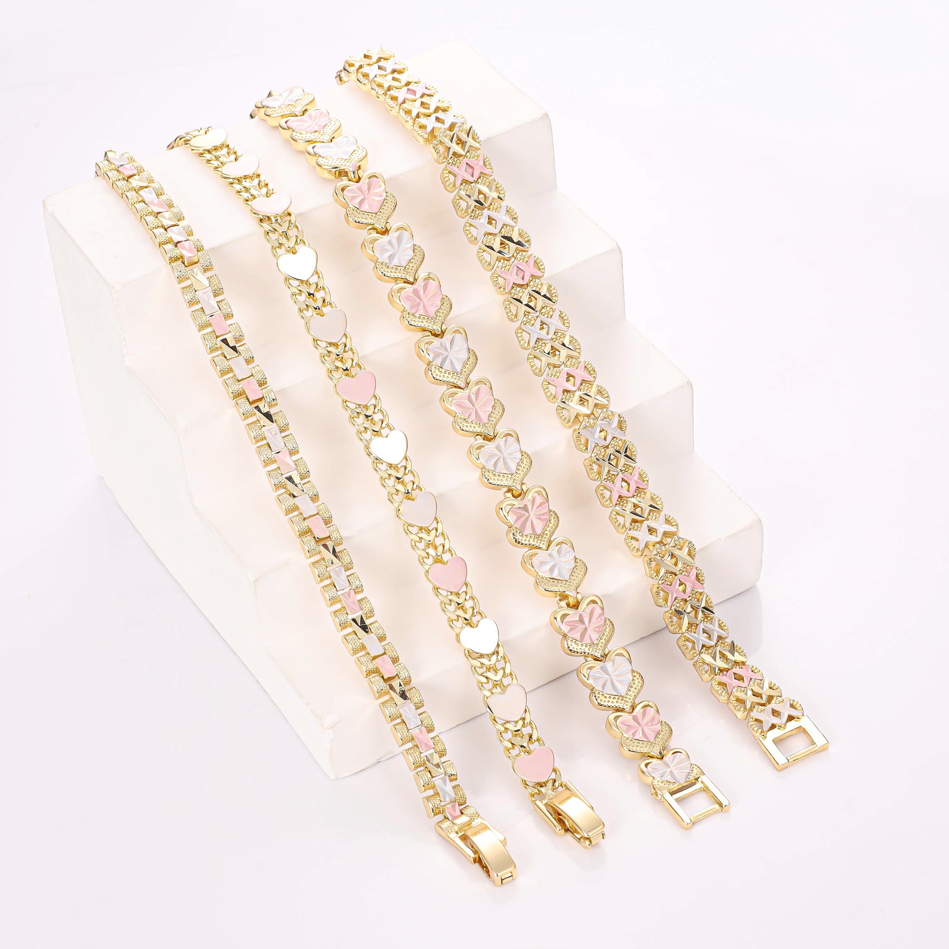PinkFancy Jewelry 14K Gold-plated copper three-colored wholesale hearts bracelet
